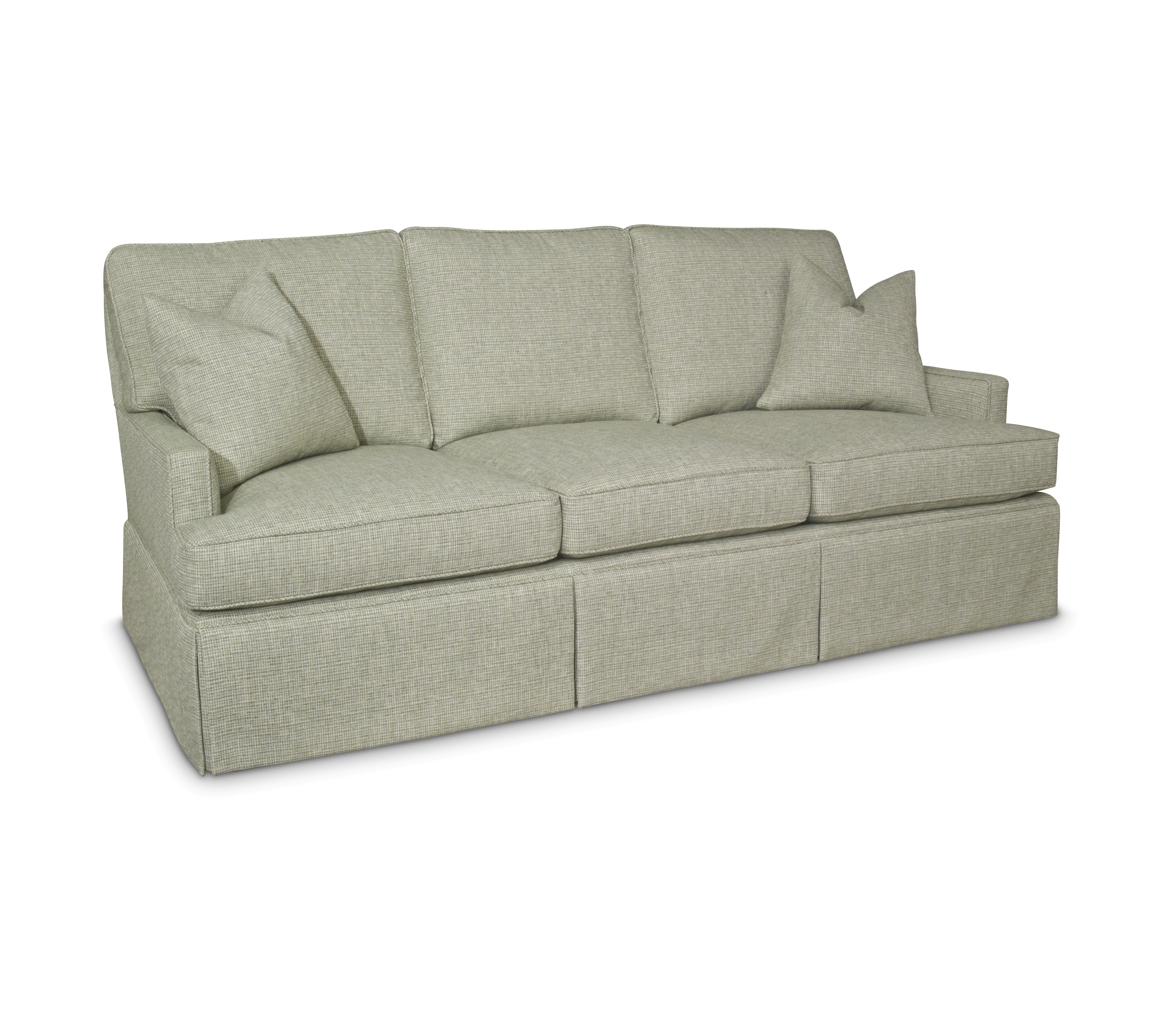 Loose back cushions / (2)19" Throw Pillows / Welt standard on seat and back cushions / 11" skirt / No bullion without custom alteration