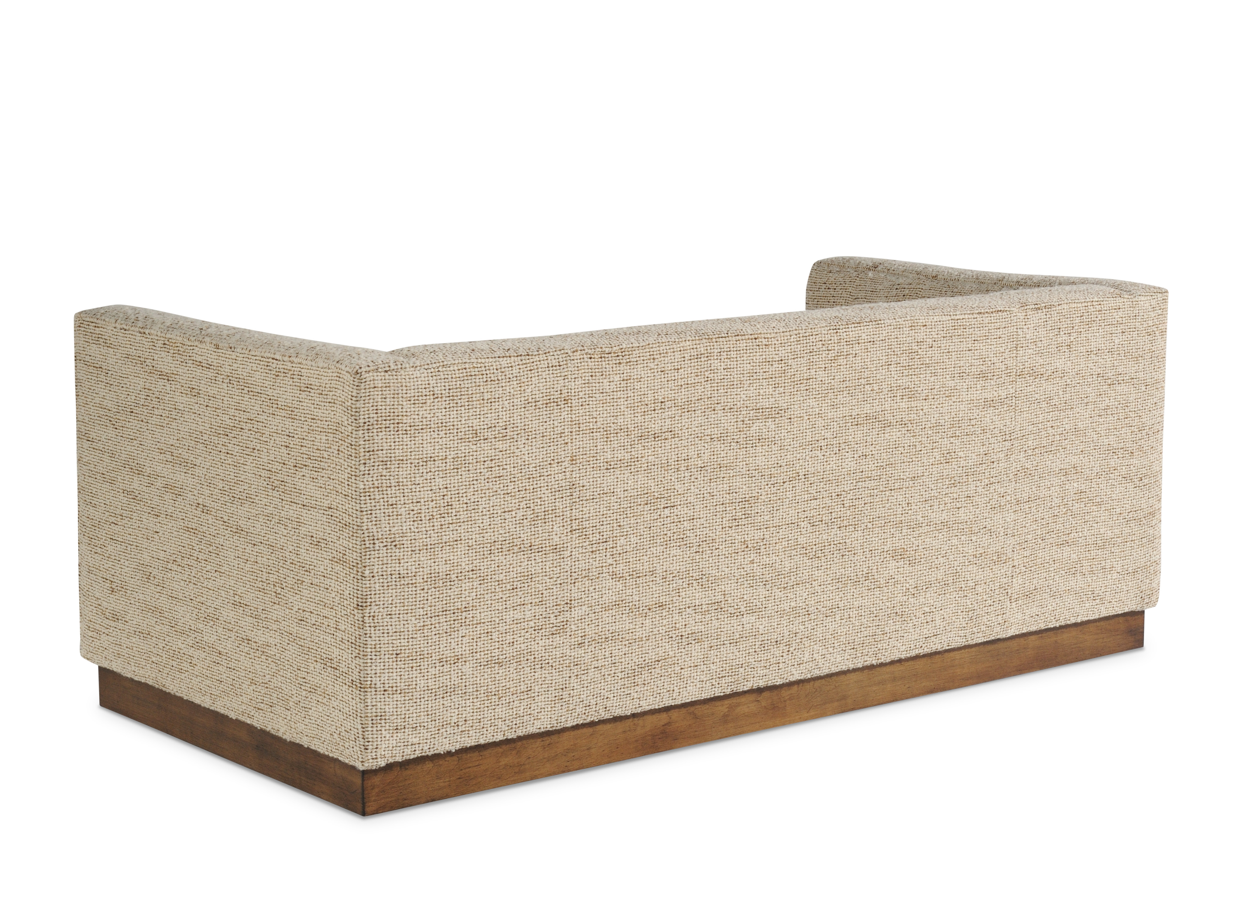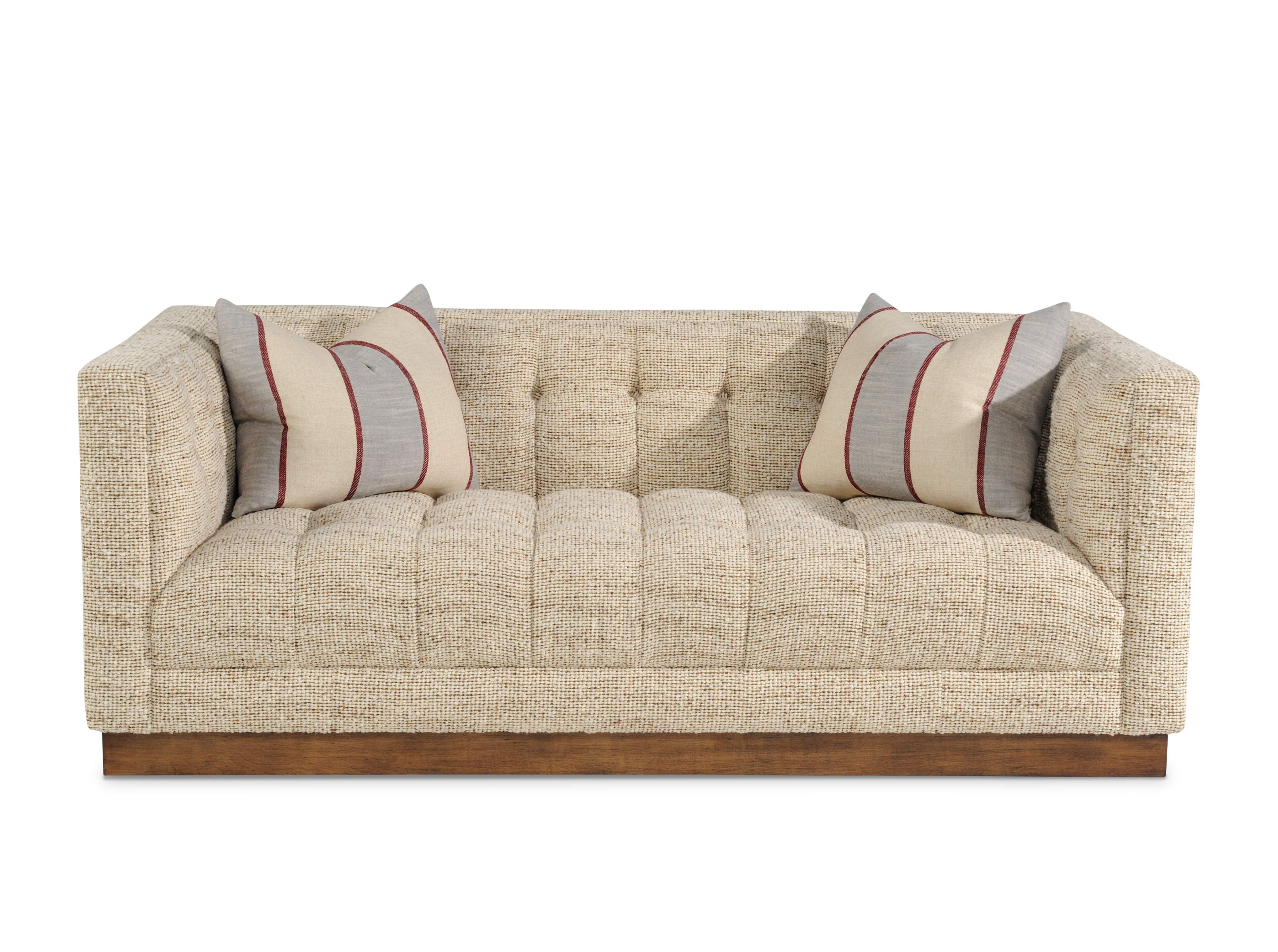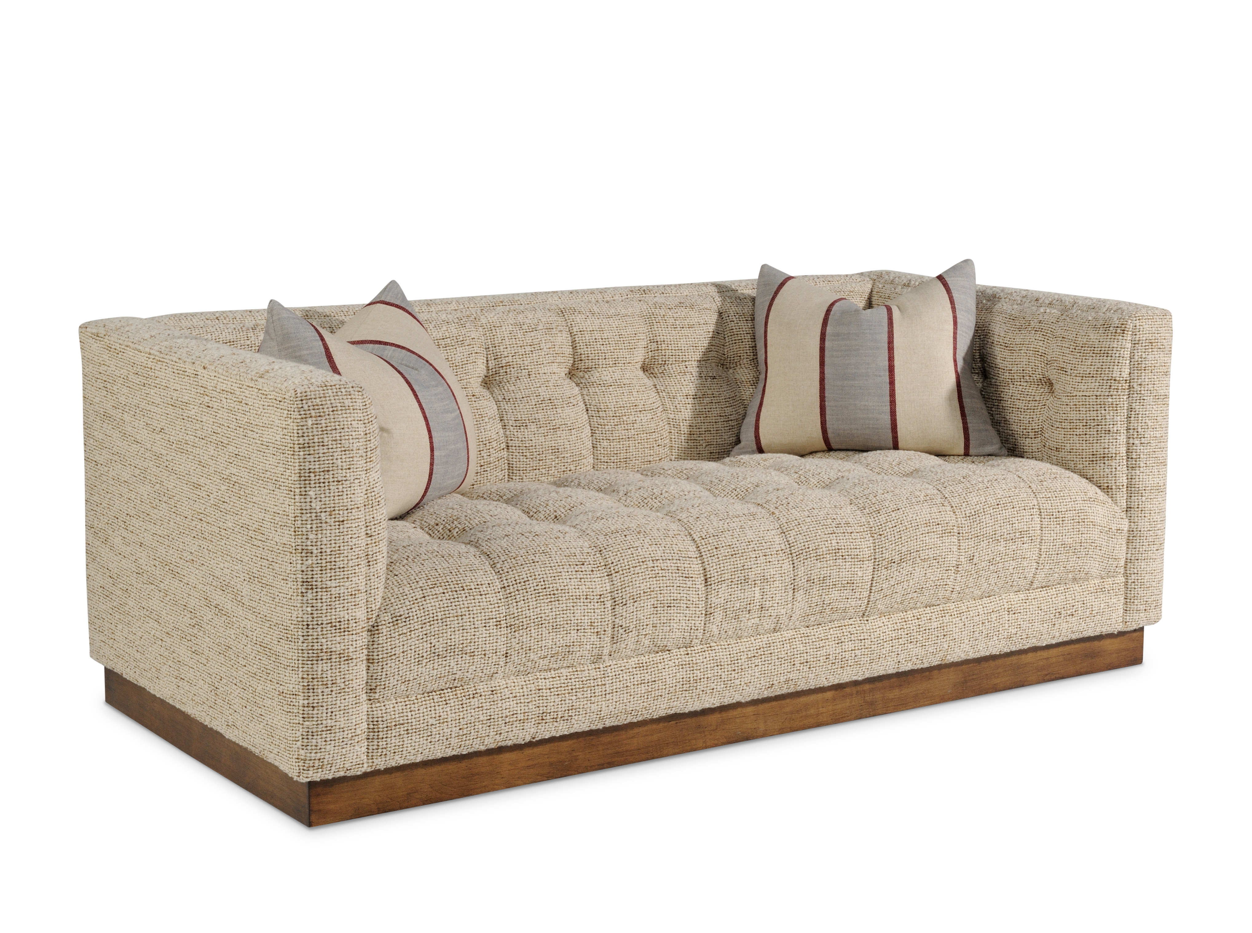Plinth base/(2)23x19"Throw Pillows/Biscuit tufted w/buttons on inarms, inback and seat