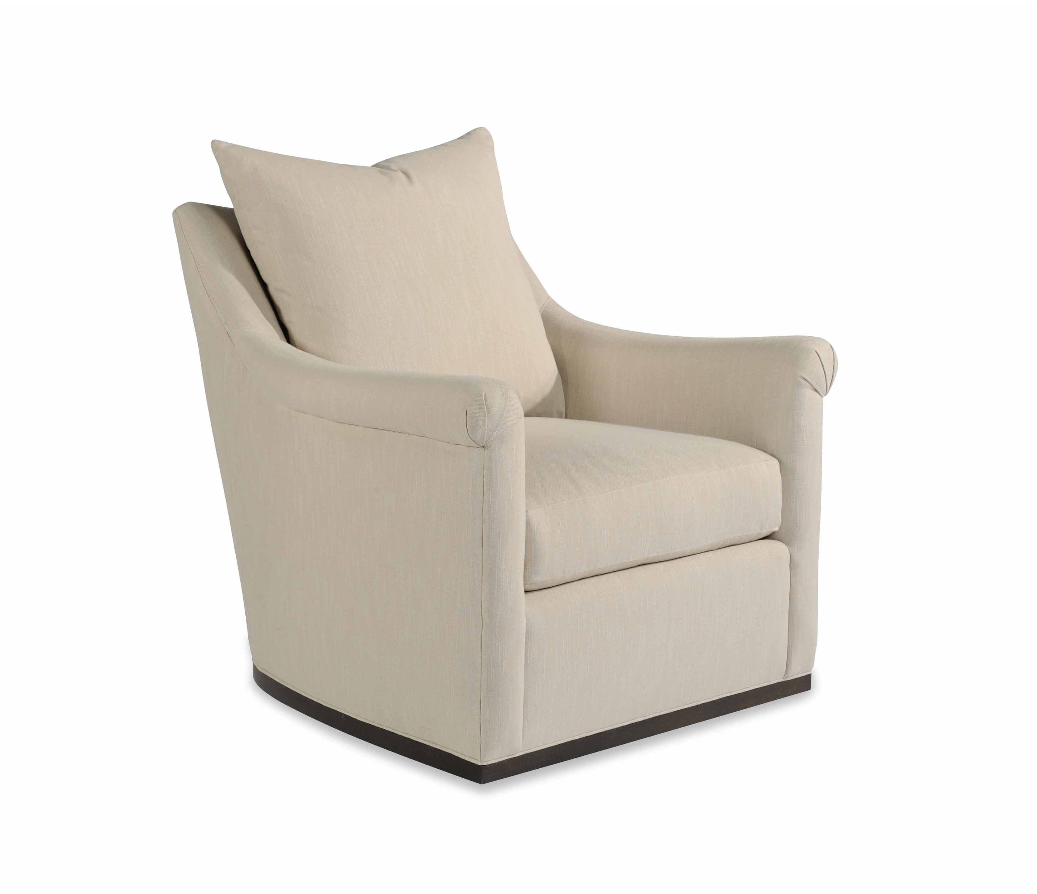 Loose back cushion / Edge stitching / Wooden base / Swivel