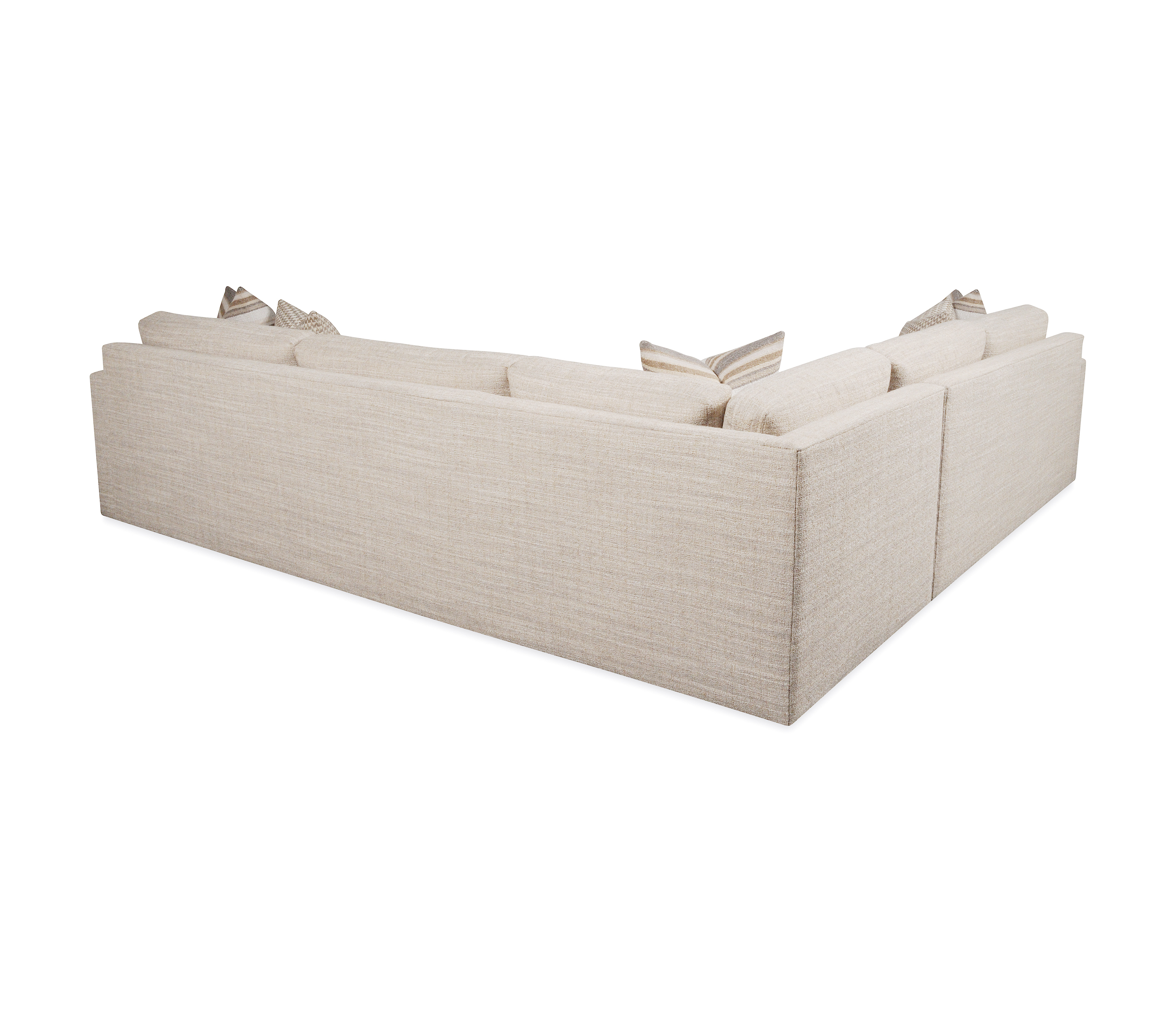 Loose back cushion/Edge stitch on seat cushion, back cushion & pillows/Upholstered to floor