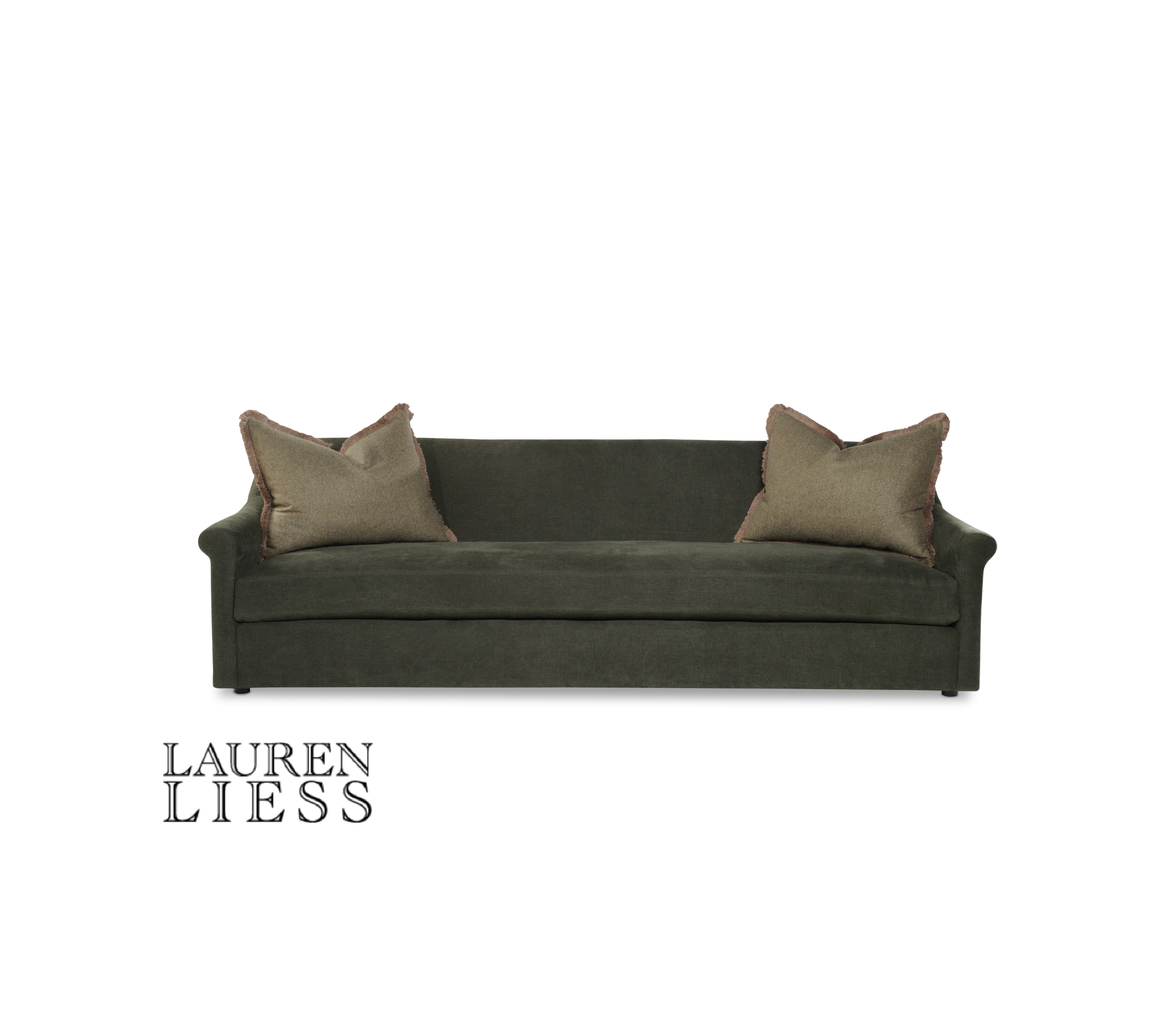 Option Shown: Contrast fabric on std. throw pillows / Fringe added to std. throw pillows