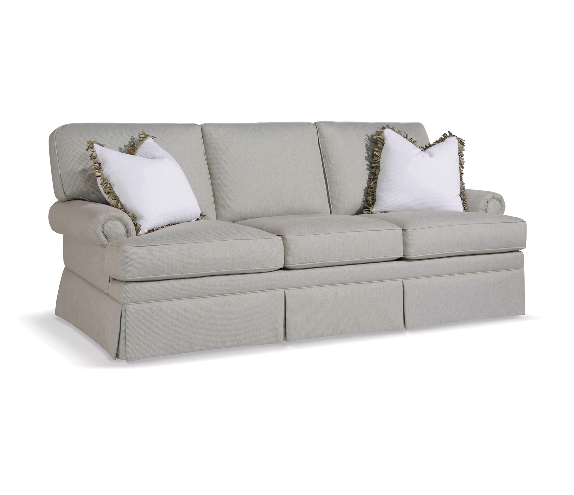 Loose back cushions / (2) 19” throw pillows / 9” Skirt