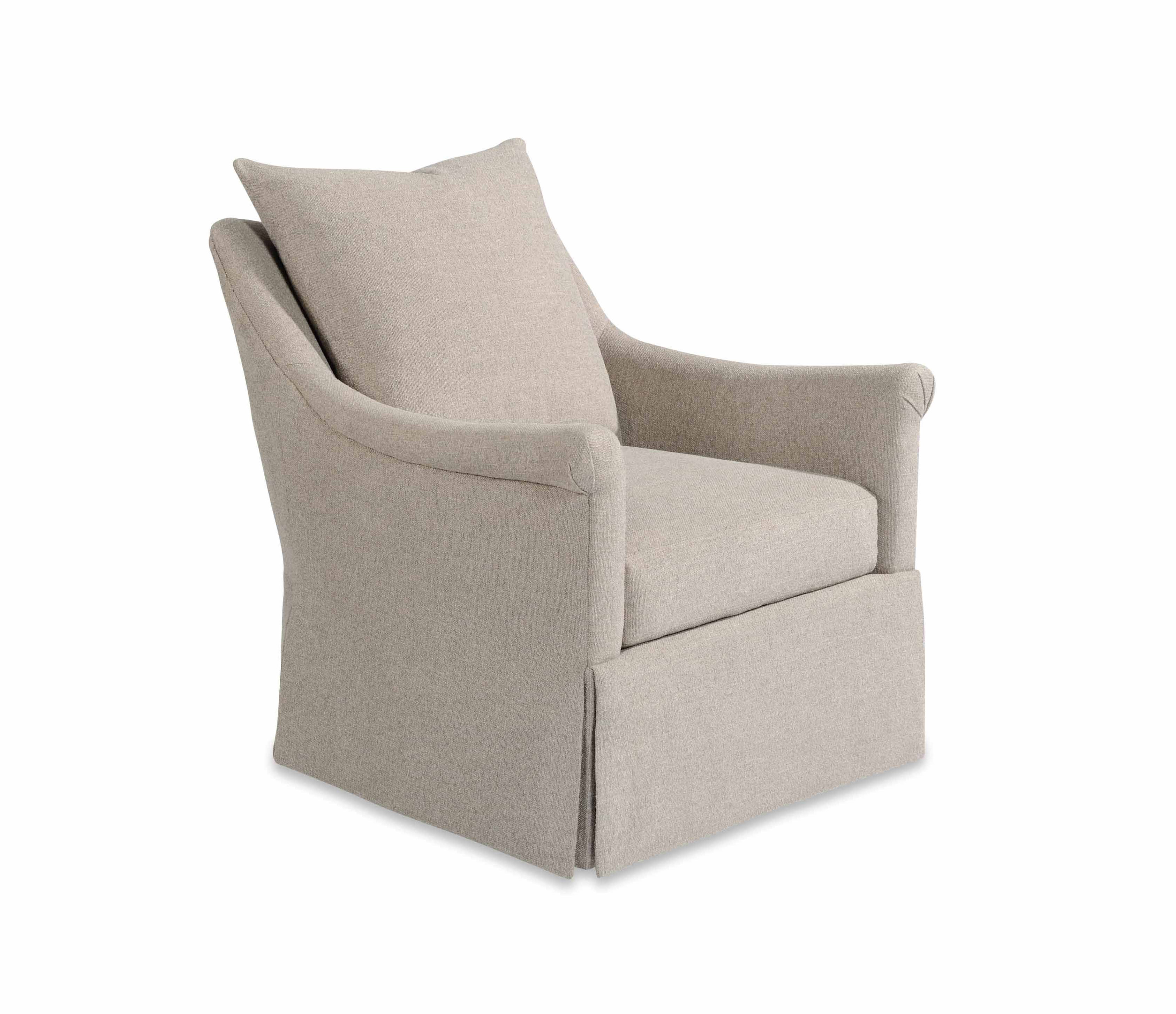Loose back cushion / Waterfall skirt / Edge stitching / Swivel